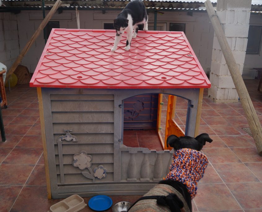 Con i cani del suo modulo è perfetta; mai un problema, nel gattile ha avuto una reazione buffa: pelo dritto sulla schiena, un pianto sommesso che ha dato però l’impressione di non essere tanto il preludio all’aggressività quanto un sconcerto verso qualcosa di assolutamente sconosciuto. Si ritiene il test gatti positivo per Carlota ma certamente sarà bene tener presente che l’inserimento con i gatti avrà bisogno di un occhio esperto.