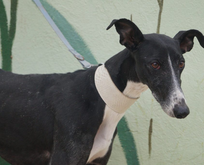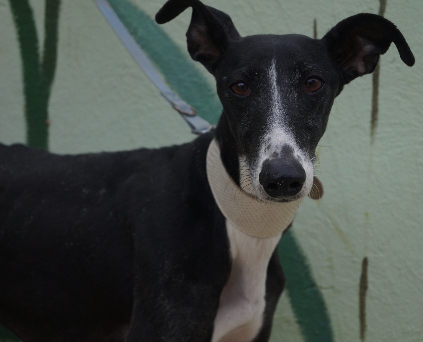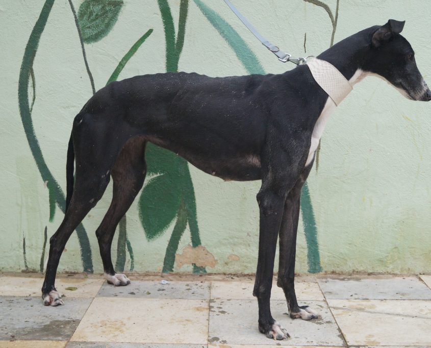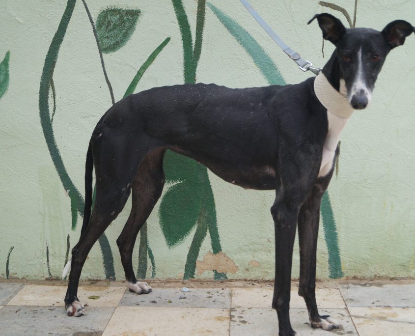 CARLOTA: ha vissuto per diverso tempo in strada, randagia, la avvistavano girovagare alla ricerca di cibo, di acqua, uno di quei cani che riescono a sopravvivere con quello che trovano qua e là. Catturata con la gabbia trappola non appena arrivata in rifugio si è trasformata in modo inaspettato: socievolissima, affettuosa, allegra, appena la chiami arriva scodinzolante piena di aspettativa per una carezza, un biscotto.