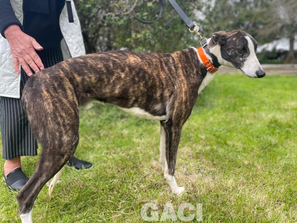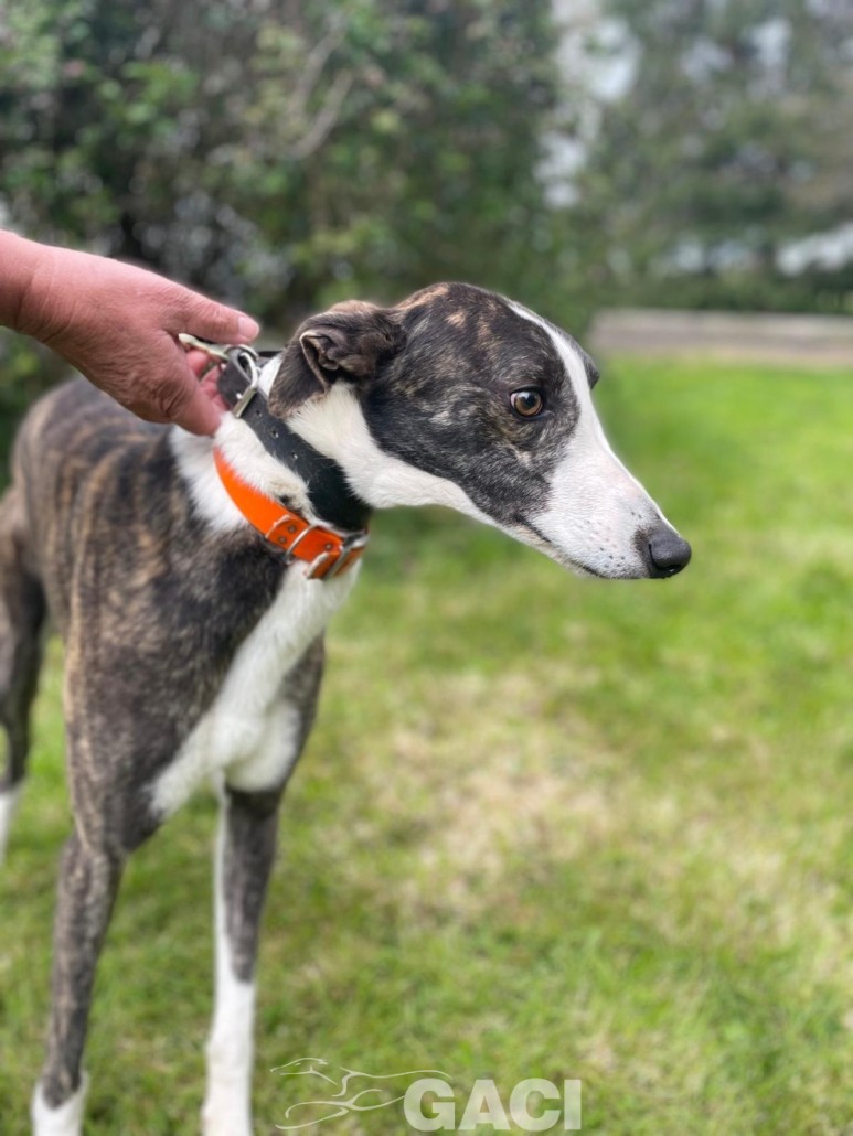 Cesare, e Romeo provengono dalla stessa cucciolata. Cesare è davvero felicità e spensieratezza. È un grey meraviglioso dagli occhi vispi e luminosi. All’inizio può tirare un pò al guinzaglio per la curiosità di conoscere cose a lui ancora sconosciute, ha un mondo tutto da scoprire. È affabile e giocoso, con gli altri cani socievole e rispettoso e può convivere con cani di piccola taglia. Cesare è adatto ad un contesto abitativo non particolarmente caotico, ad una famiglia dinamica, che sappia apprezzare la sua speciale sensibilità, ai bambini che lo coinvolgano nel gioco. Vederlo approcciarsi alle prime esperienze di vita familiare, sarà di grande gioia.