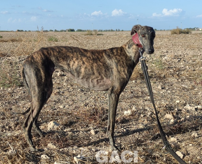 Portata in in rifugio dal suo vecchio proprietario da pochissimi giorni per cui si sta ambientando e per ora si mostra un pochino spaesata e guardinga. Fuori in passeggiata però si trasforma in una creatura serena, solare, felice, che sa camminare perfettamente al guinzaglio, stando al fianco senza tirare.