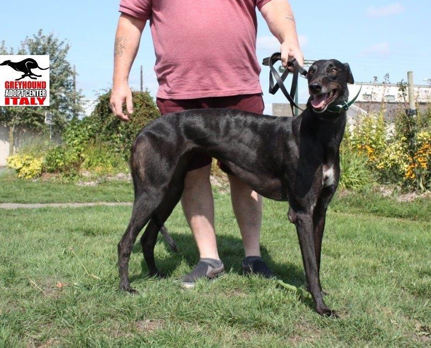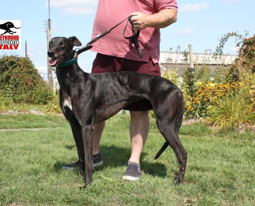 CHIC ecco una favolosa super-lady che farà la gioia di qualsiasi famiglia che la adotterà, lei è perfetta a vivere con bambini o cagnolini anche mignon. Chic è una signora educata, ubbidiente, pulitissima nel box e brava con tutti gli altri Grey, ha un carattere splendido, dolcissimo, molto affettuosa ed intelligente, capisce subito cosa passa nell’aria e si fida del suo trainer. È una bella signora che merita una vita serena, un bel cuscino dove sdraiarsi in adorazione del proprio umano e tante belle passeggiate, tanti bei momenti spesi insieme con la propria famiglia. Ora Chic è con il trainer che l’ha avuto per lungo tempo e che non vuole che venga abbattuta. Chic è bravissima al guinzaglio, in auto, ovunque sia in passeggiate al villaggio che in campagna. Ha una taglia media intorno ai 27 kg ed è in forma ottima. Non ha traumi emotivi o altro fisici.
