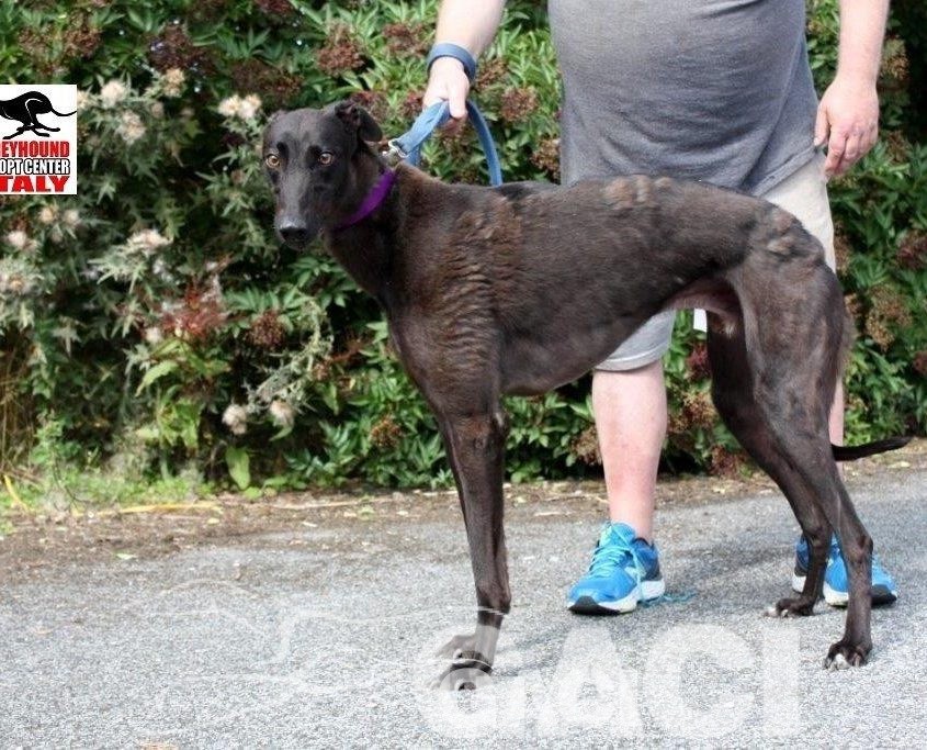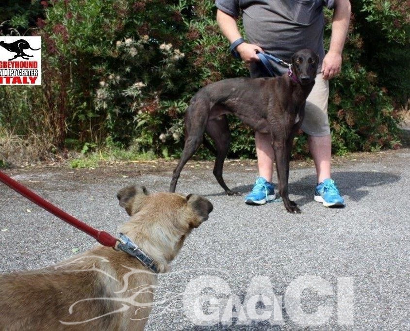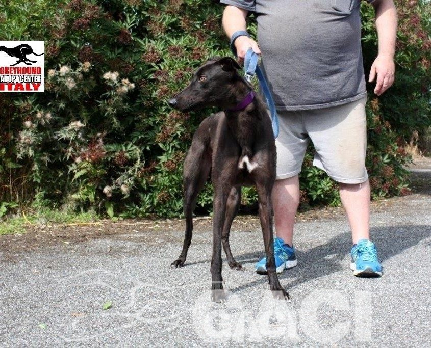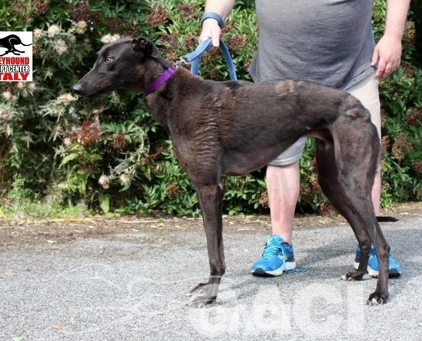 FLASH ha ancora il pelo da cucciolone, non ha mai messo piede in una pista e non è mai stato addestrato perché non ha predatorio. E’ stato lasciato lì in un paddock in attesa di capire cosa farsene di lui, è una pagina vergine completamente da scrivere con quello che gli si insegnerà e tutte le esperienze nuove che farà insieme alla sua famiglia. Ha una vita intera davanti per fortuna lontano dalle piste. È dolce di carattere come lo sono i levrieri, discreto ma sempre presente, guarda ogni mossa che faccio con gli occhi grandi e languidi, prende le carezze e impara a prendere anche i biscotti dalle mani. Che bella cosa sapere che ha la fortuna di avere una vita bella, piena di piccole cose semplici “da famiglia” libero e amato. – bravo con tutti i can idi qualsiasi taglia. Sarà buon compagno di bambini e persone agés. Bravo al guinzaglio