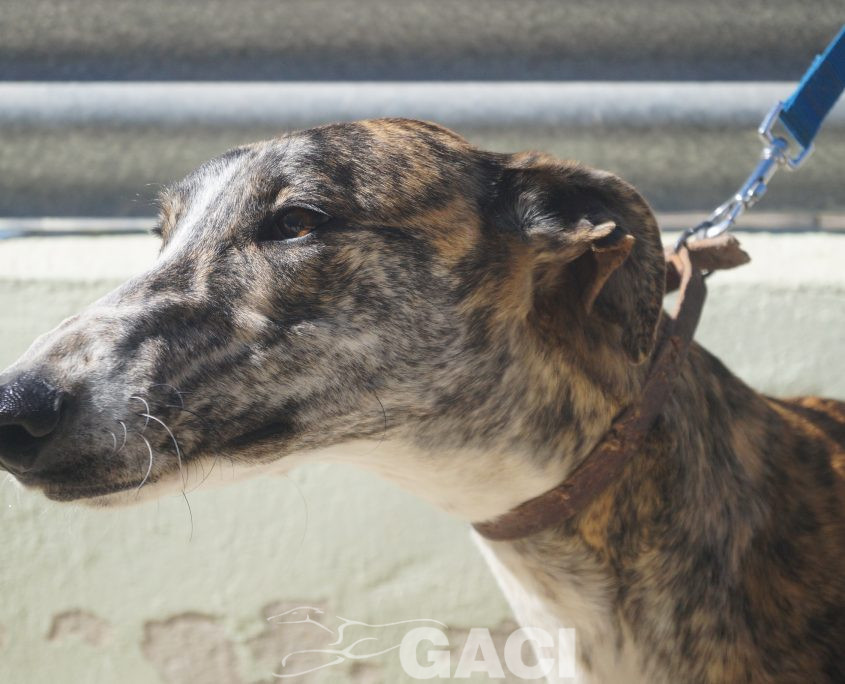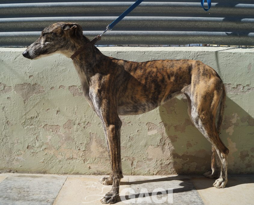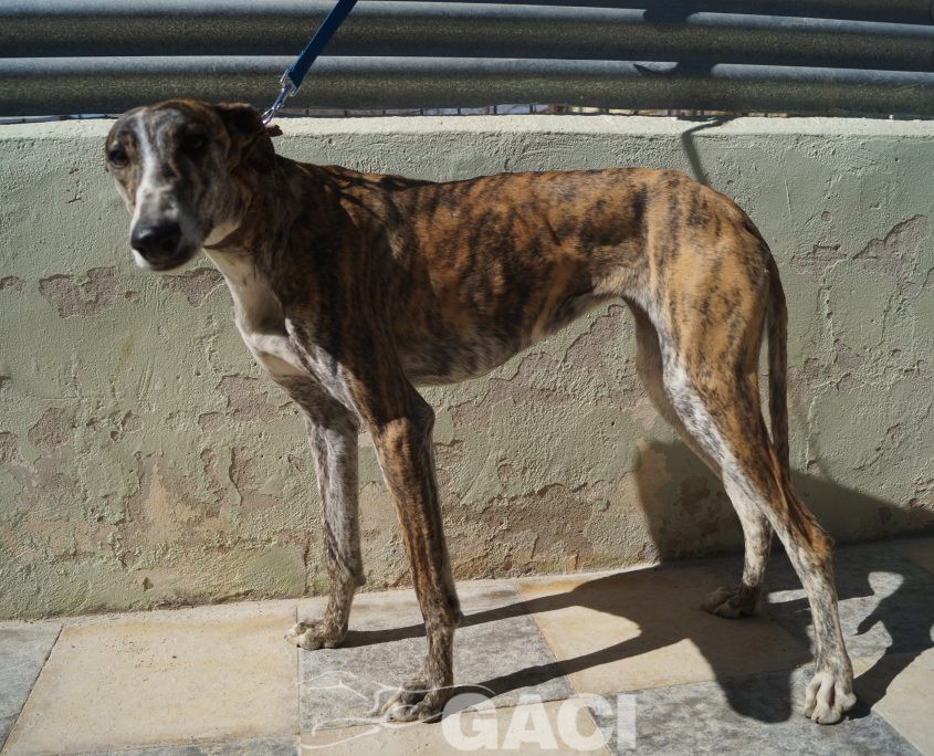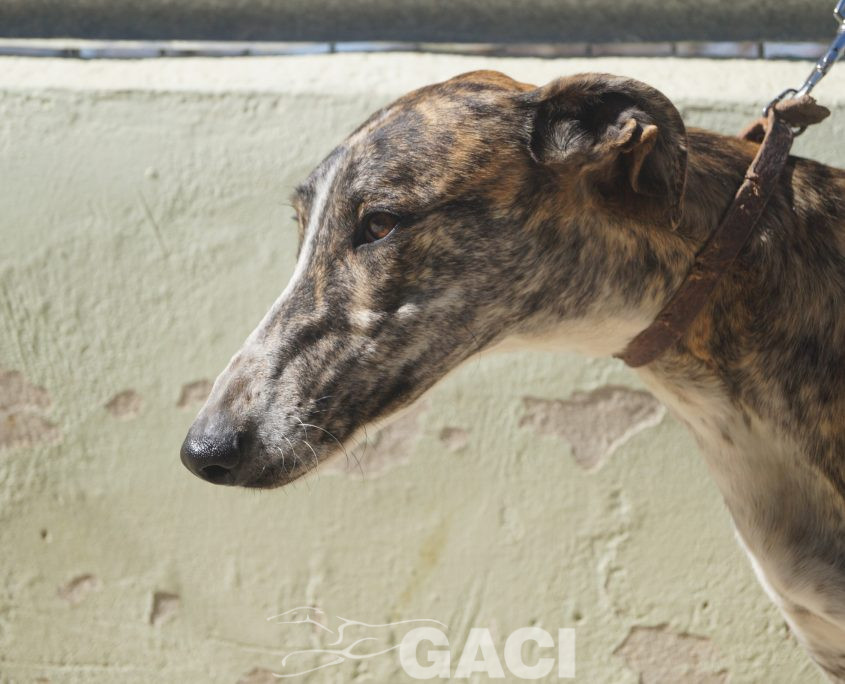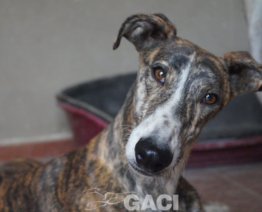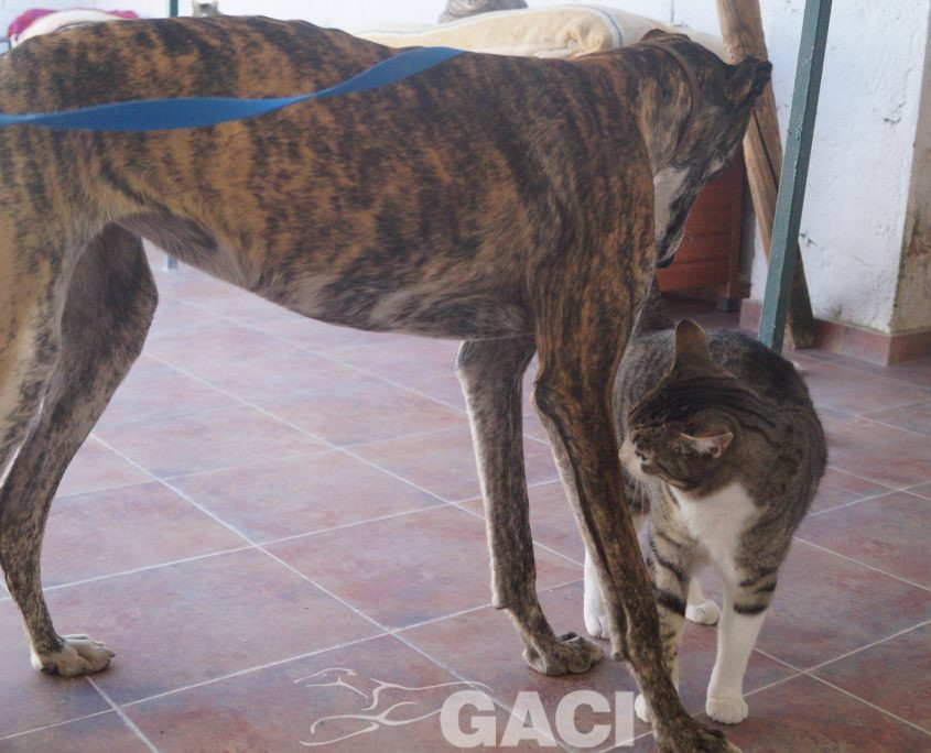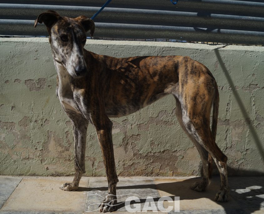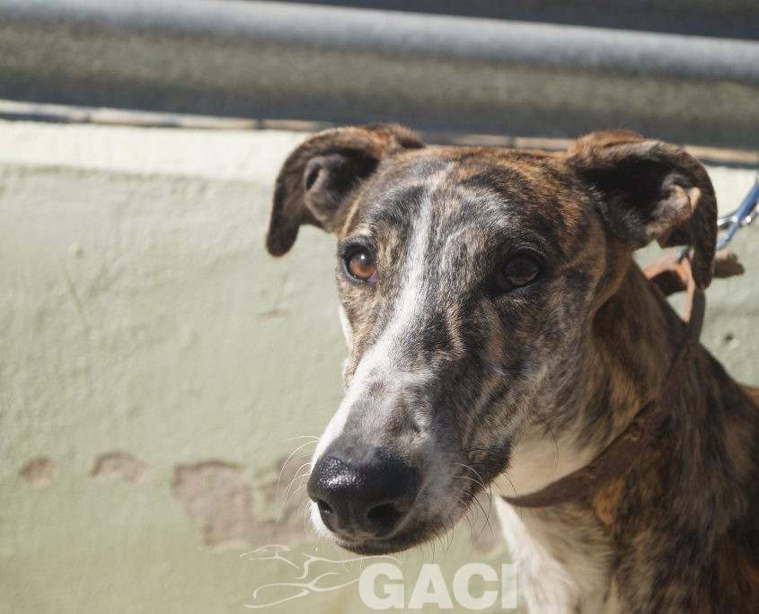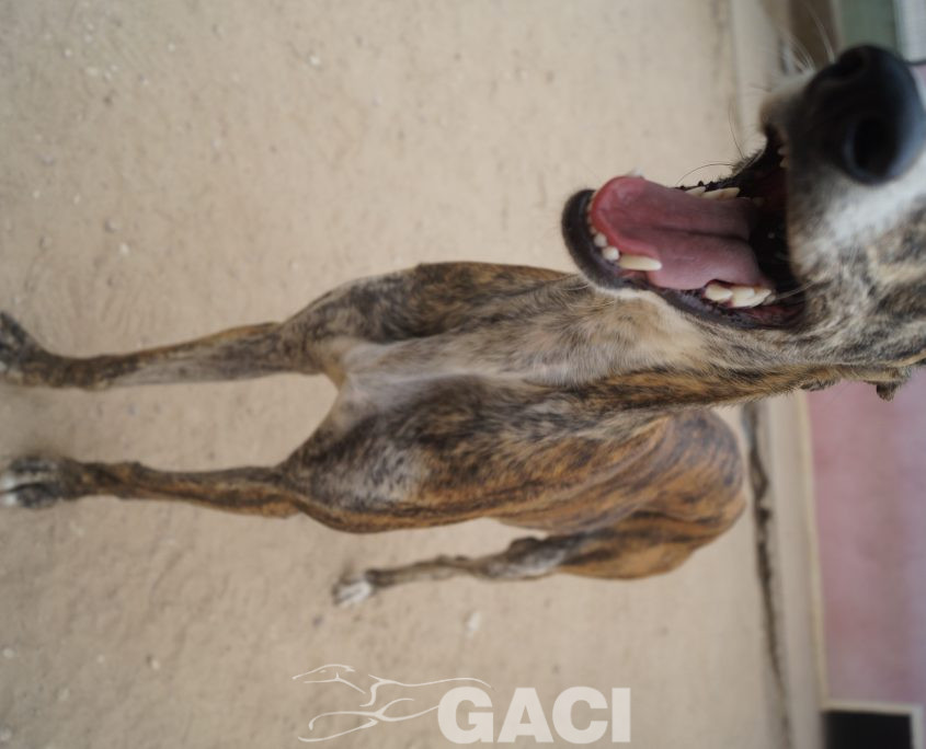 Lei ha un carattere favoloso: è un mulinello di vento che solleva al suo passaggio una nuvola di allegria, di gioia, di felicità; socievolissima, perfetta con i cani, con le persone, la sua leggerissima zoppia non fa altro che esaltarne la simpatia e non influisce in alcun modo sul fatto che India conduca una vita normalissima. Una galga speciale, una galga per chiunque.