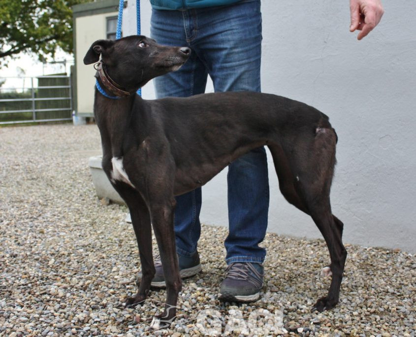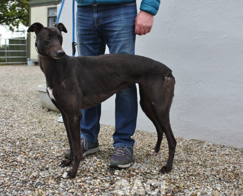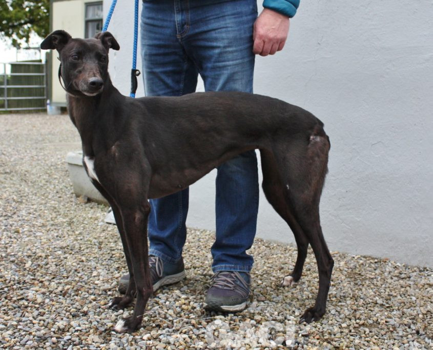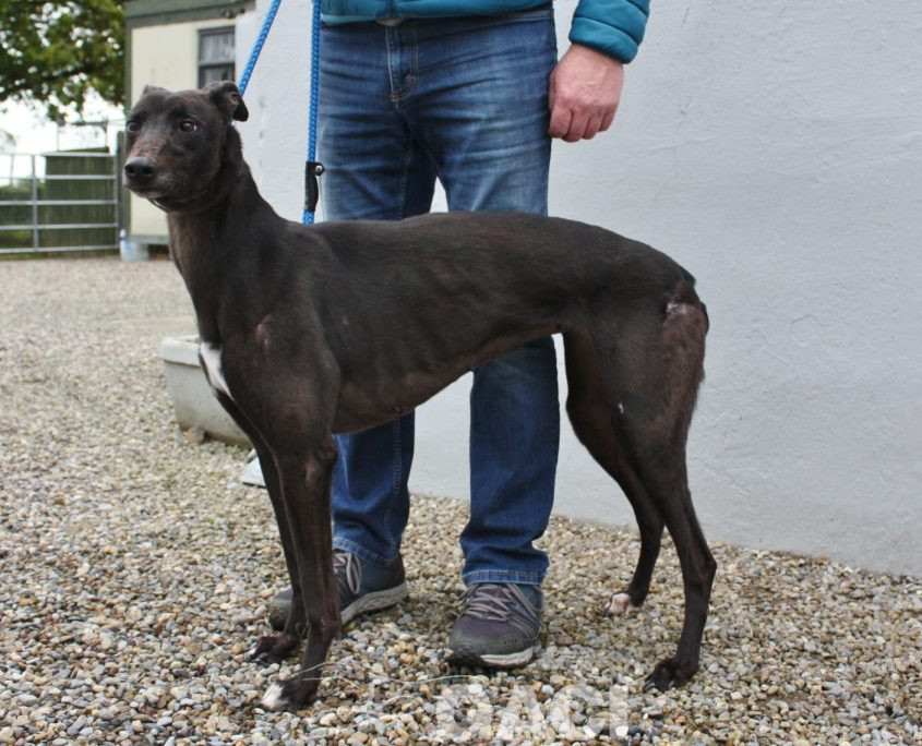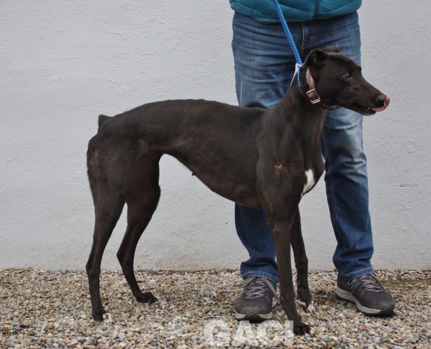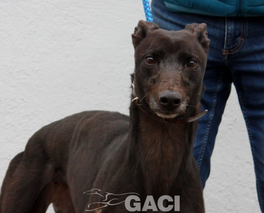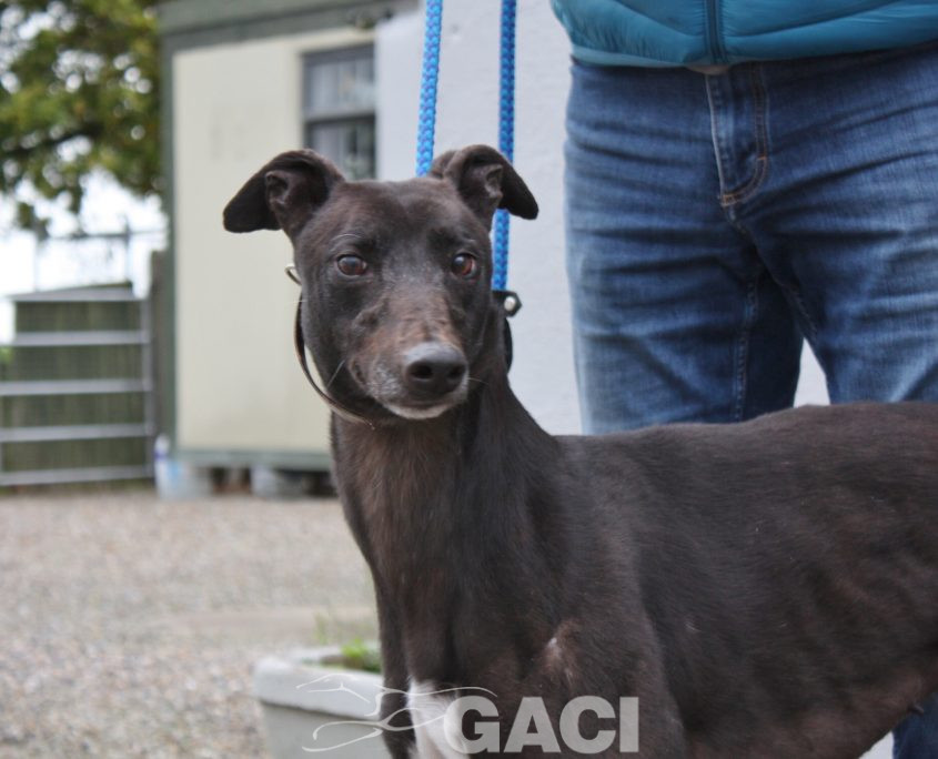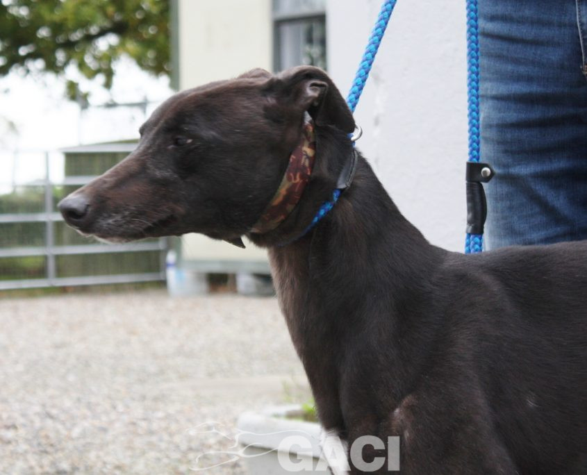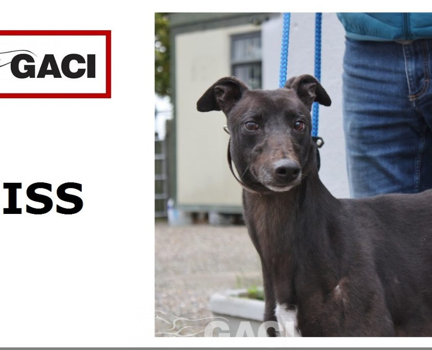 MISS –ADOZIONE DEL CUORE – è tranquilla, placida, ama la vita in casa, il suo letto e le passeggiate calme al passo ma se c’è un prato non disdegna una bella corsa e poi di nuovo alla gamba. È buffa e affettuosa, alza la testolina tutte le volte che la guardo e basta pensare a darle una carezza che lei ha già infilato la testina sotto alla mano. È assolutamente adorabile.ha la coda amputata e non sappiamo come sia successo, del suo passato sis a poco, è stata ceduta dal prorietario che non l’avrebbe tenuta oltre tempo ed ora è presso un kennel irlandese che la ospita temporaneamente.. Anche lei è stata recuperata con alter grey fattrici dismesse che non hanno più possibiltà di sopravvivere in Irlanda. Taglia medio-piccola kg 26 . carattere ottimo, si piccolo cani di qualsiasi taglia, ama I bambini ed è adatta a vivere con persone agé. Brava al guinzaglio e in auto