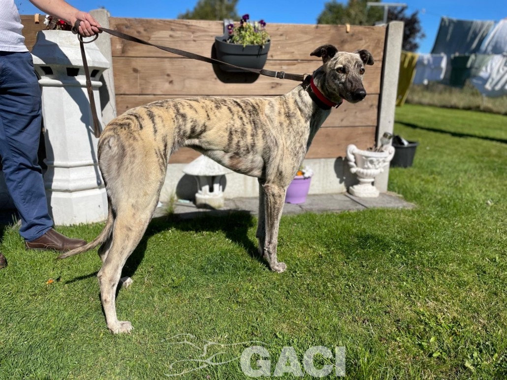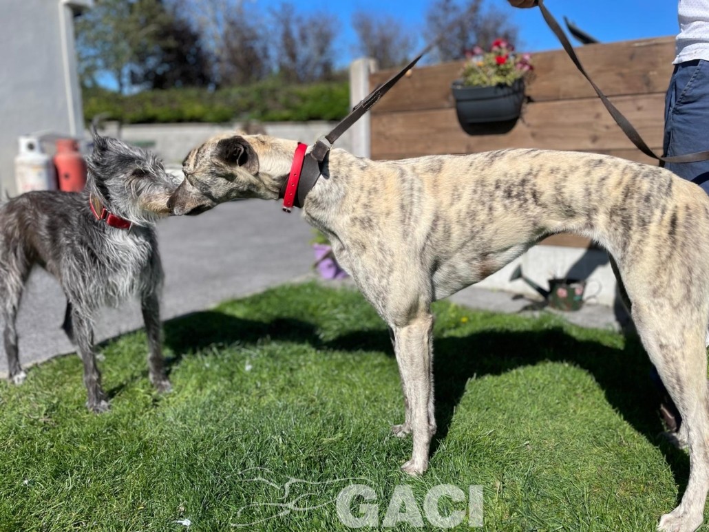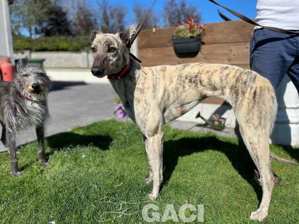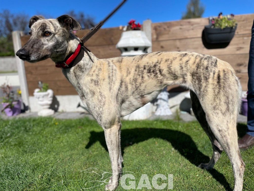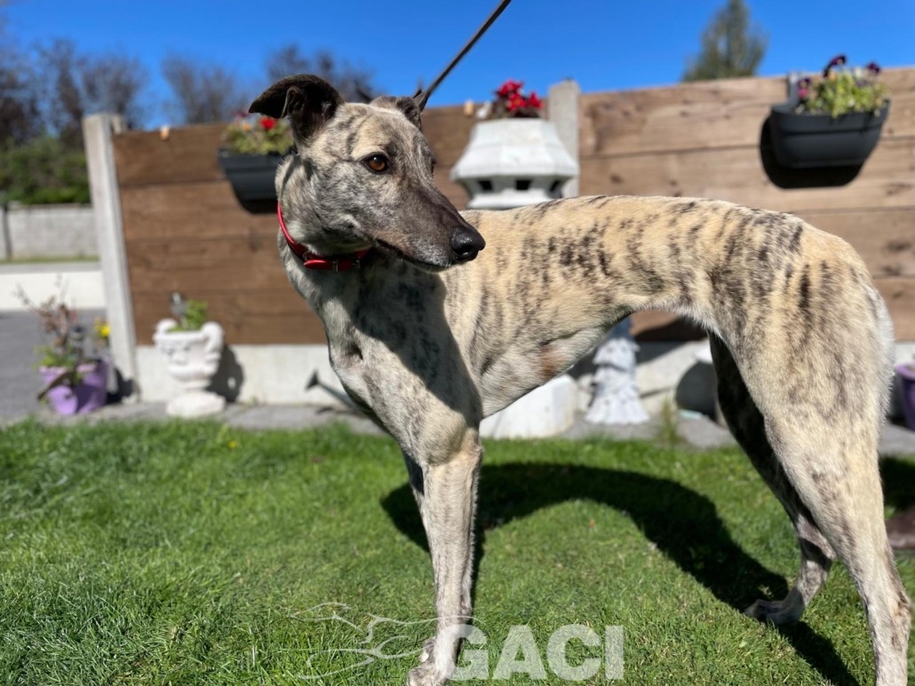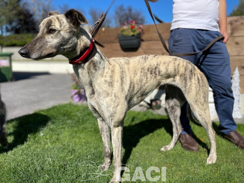 Pearl è una coursing dal temperamento tranquillo, dolce e rispettoso. Ama passeggiare ed essere accarezzata. Ha un manto setoso, un musino delizioso e grandi occhioni curiosi. È brava al guinzaglio ed equilibrata con gli altri cani con cui convive in armonia rispettando spazi e regole. Può convivere con cani di piccola taglia. Pearl può essere inserita in ogni contesto abitativo e familiare, è adatta ai bambini e ad una prima adozione. Una carezza gentile la farà sentire subito speciale. Abituata a viaggiare, è un’ottima compagna di viaggio.