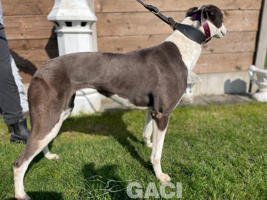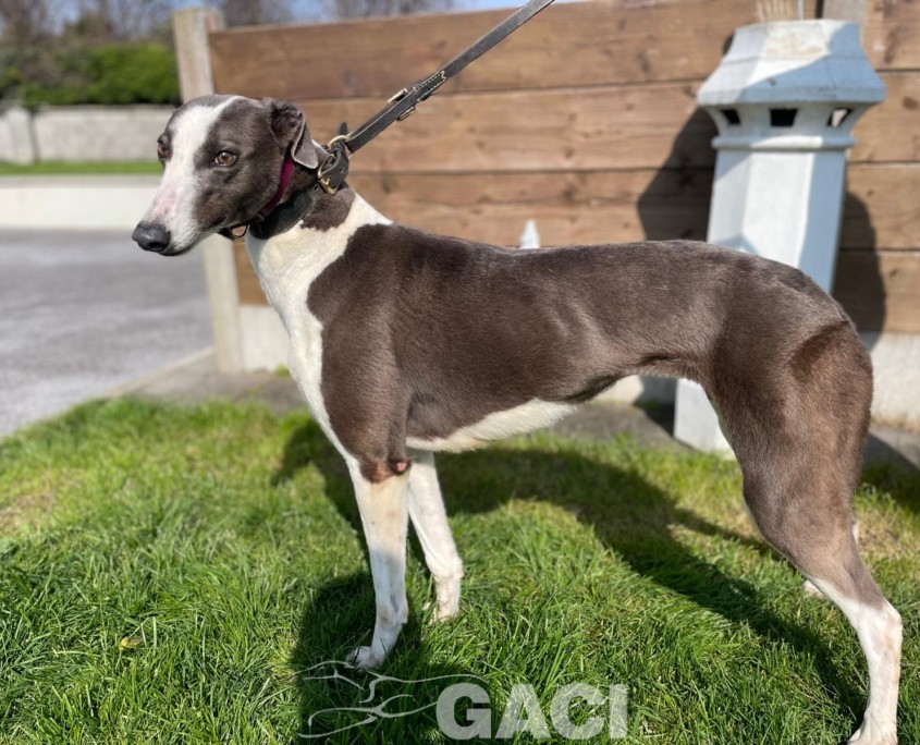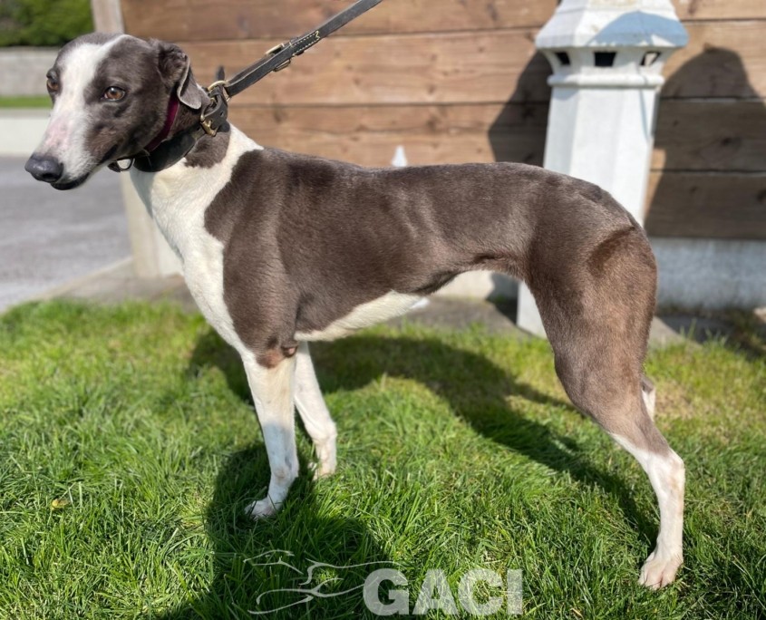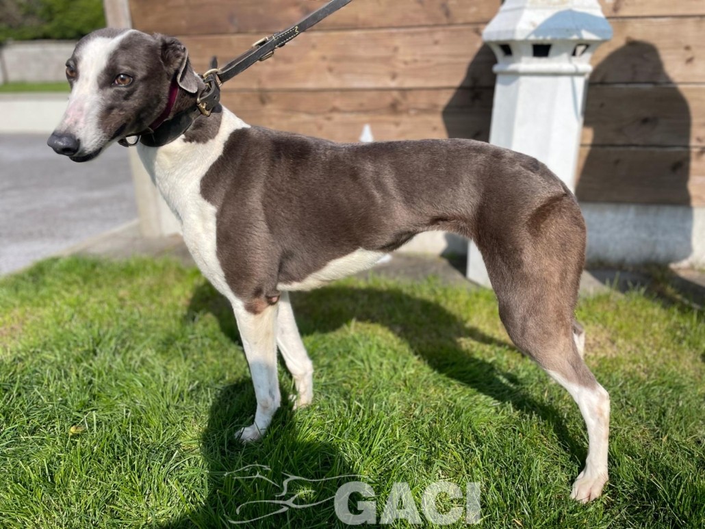 Bellissima Rosie, sembra una statua dipinta, di dimensioni contenute, un fisico proporzionato e un bel manto lucido. Rosie non è adatta a gareggiare, ama starsene tranquilla nel suo box, molto pulita, è affettuosa e adora le carezze e le persone. Non ha mai dato problemi nella convivenza con gli altri cani, è equilibrata, e può convivere con cani di piccola taglia. Al guinzaglio è brava, ama passeggiare, e può essere inserita in ogni contesto abitativo, adatta ad ogni famiglia e ai bambini. Ha un carattere dolce, socievole e amorevole. È brava in auto e abituata agli spostamenti, una vera compagna di vita.