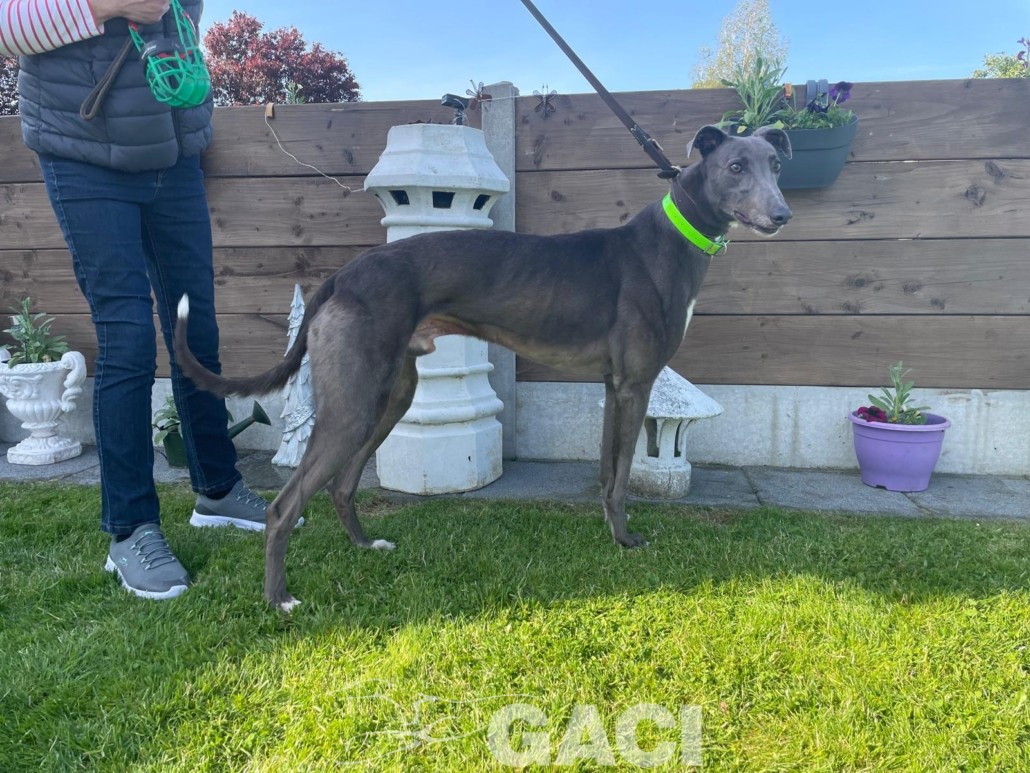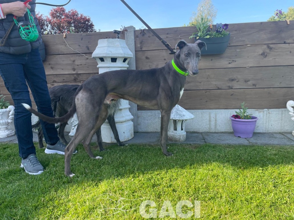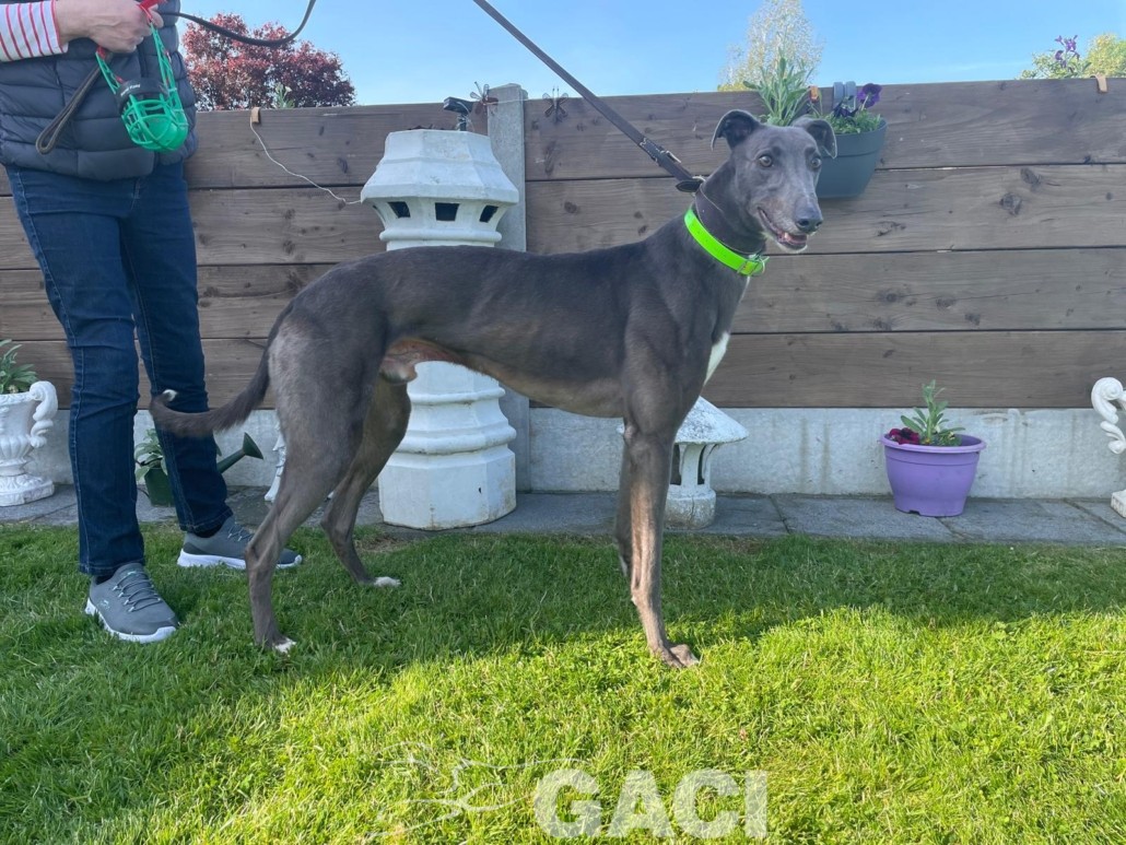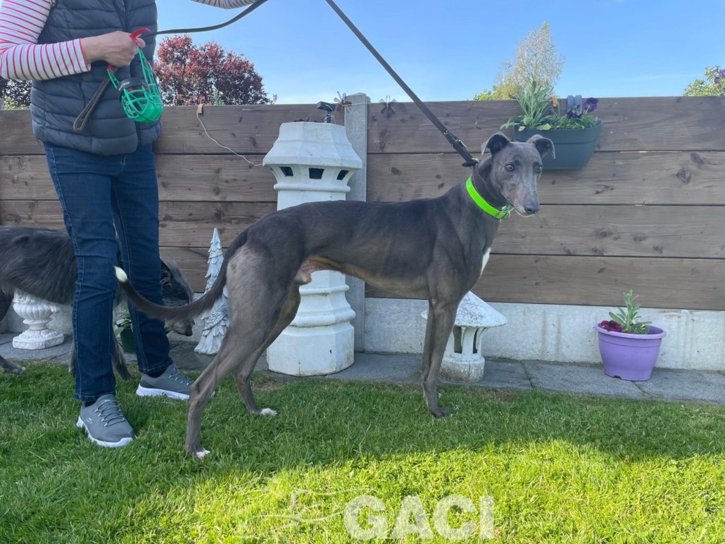 Star è un grey di 6 anni ma ha l’animo di un bambinone. È stato un bravo atleta, diligente, ma ha mantenuto il suo bel carattere solare. Ama giocare con gli altri cani, pur essendo rispettoso degli spazi e può convivere con cani di piccola taglia. Ama interagire con le persone, ne cerca il consenso e la fiducia, è un vero coccolone. Bravo ed educato al guinzaglio, conosce bene le regole ma ora è arrivato il momento di godere delle abitudini e dell’affetto familiare. Star è adatto ad ogni tipologia di famiglia, adatto ai bambini, e ad ogni contesto abitativo. Perfetto per una prima esperienza di adozione. Fisicamente tenuto molto bene, ha un fisico scolpito e un bel manto setoso come velluto. Star saprà far innamorare con i suoi occhioni verdi chiunque saprà andare oltre la sua età e gli darà la possibilità di poter avere una vita di amore. Bravissimo in auto, è un ottimo compagno di viaggio.