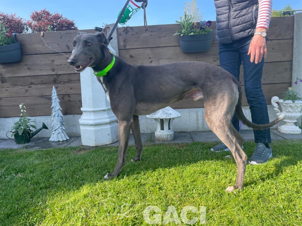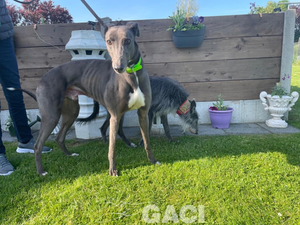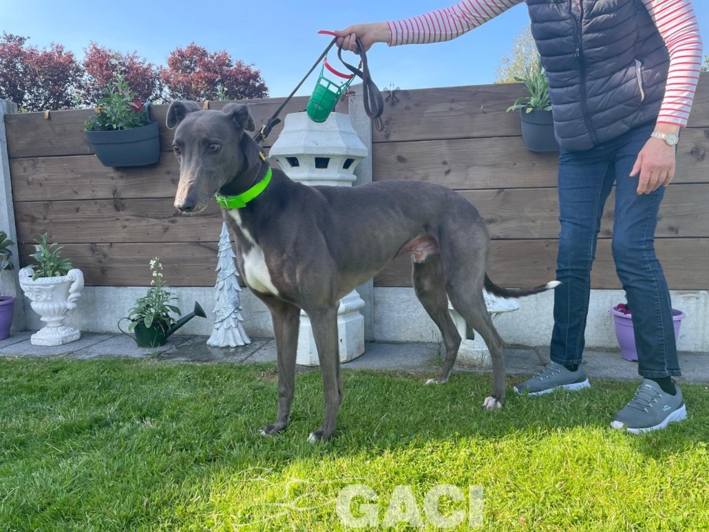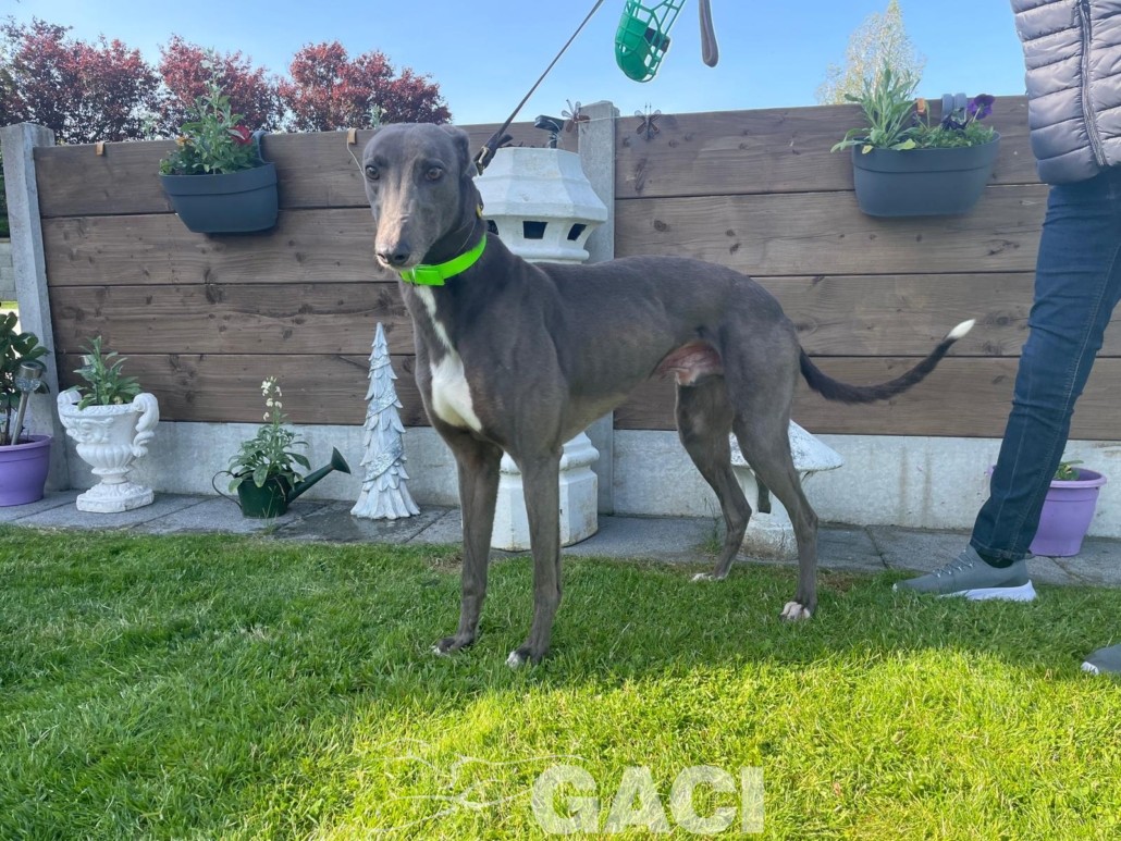 Star è un grey di 6 anni ma ha l’animo di un bambinone. È stato un bravo atleta, diligente, ma ha mantenuto il suo bel carattere solare. Ama giocare con gli altri cani, pur essendo rispettoso degli spazi e può convivere con cani di piccola taglia. Ama interagire con le persone, ne cerca il consenso e la fiducia, è un vero coccolone. Bravo ed educato al guinzaglio, conosce bene le regole ma ora è arrivato il momento di godere delle abitudini e dell’affetto familiare. Star è adatto ad ogni tipologia di famiglia, adatto ai bambini, e ad ogni contesto abitativo. Perfetto per una prima esperienza di adozione. Fisicamente tenuto molto bene, ha un fisico scolpito e un bel manto setoso come velluto. Star saprà far innamorare con i suoi occhioni verdi chiunque saprà andare oltre la sua età e gli darà la possibilità di poter avere una vita di amore. Bravissimo in auto, è un ottimo compagno di viaggio.
